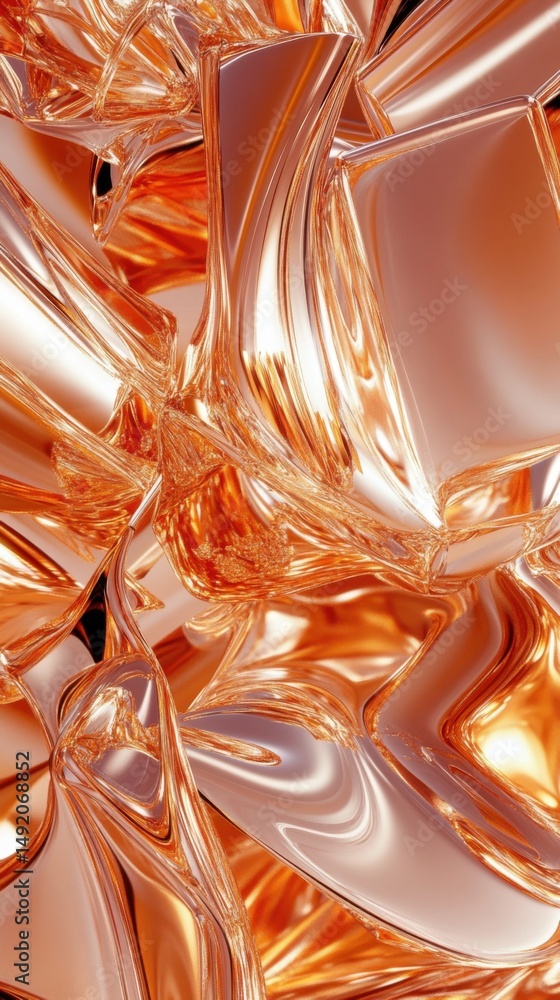 Wall mural : Abstract metallic forms interplay in dynamic composition macro studio shot copper gold tones