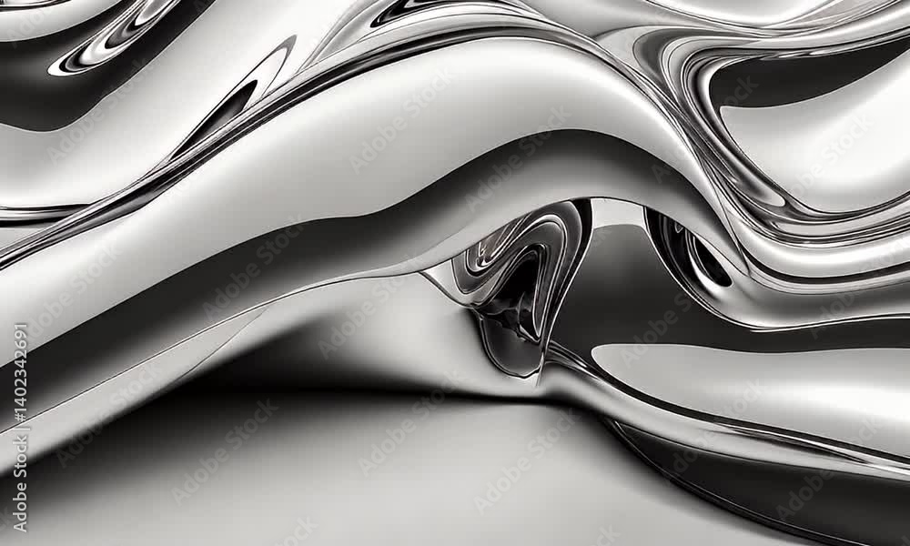 Wall mural : Abstract metallic waves in shiny monochrome textures creating fluid motion and elegant patterns