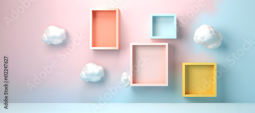 The watermark will not be included on Wall mural.: Abstract minimal concept - pastel multi colour clouds background with empty blank photo frames, abstr
