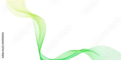 Wall mural : Abstract minimal tech with wave green lines and light yellow points on a white background, abstract