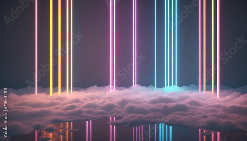 Wall mural abstract minimalist 3d render with neon vertical lines and colorful glowing clouds