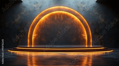 Wall mural abstract minimalist backgroun of golden rounde arch steps an empty stage for product presentation tr - Wall murals Wall mural abstract minimalist backgroun of golden rounde arch steps an empty stage for product presentation tr - Wall murals