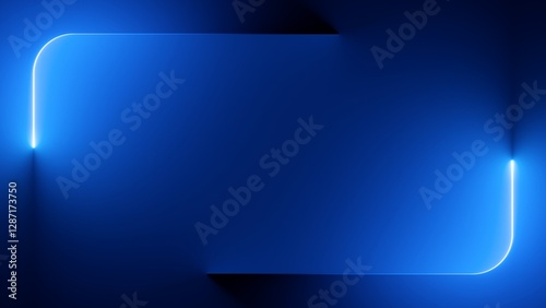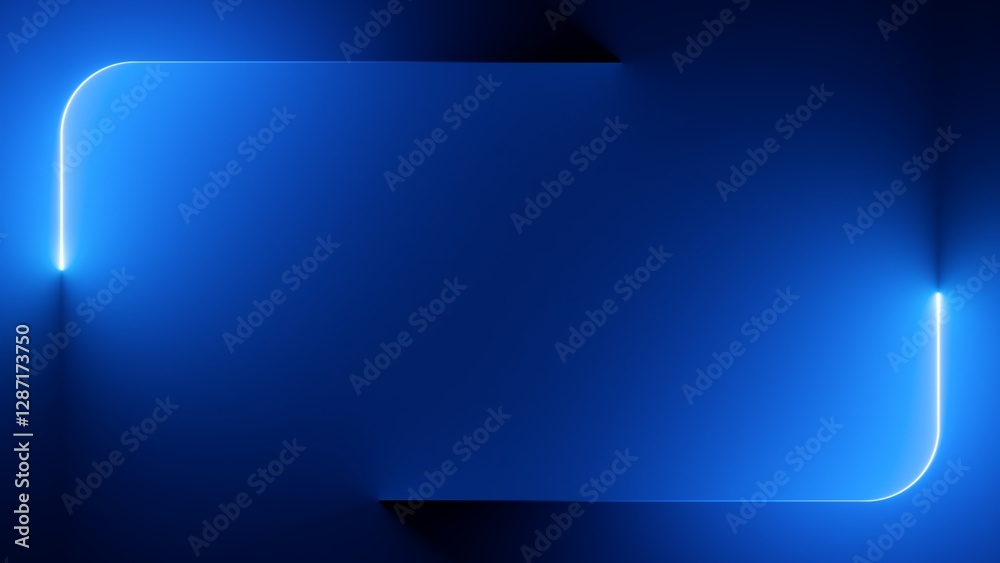 Wall mural abstract minimalist blue background. linear neon frame with glowing rounded corners. 3d rendering