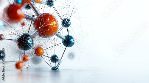 The watermark will not be included on Wall mural.: Abstract molecular structure: a 3d rendering of interconnected spheres and lines representing atomic
