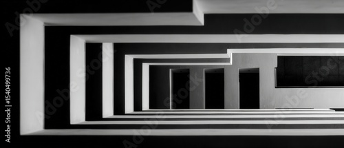 The watermark will not be included on Wall mural.: Abstract monochrome architecture featuring geometric shapes and strong contrast, creating a modern a