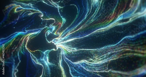 Wall mural abstract motion background shining liquid particles. organic network of mesh waving and swirling on
