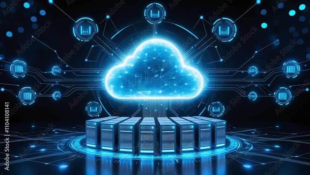 The watermark will not be included on Wall mural.: Abstract motion of digital data flow - digital informational technology web futuristic hologram with
