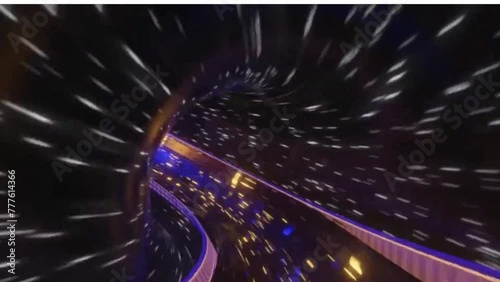 Wall mural abstract motion video of moving forward through a 3d shiny colorful pathway. graphics.