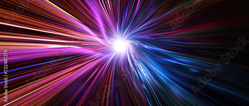 Wall mural abstract multicolored curve lines in dark space, perspective fast light trails in cyberspace. digita