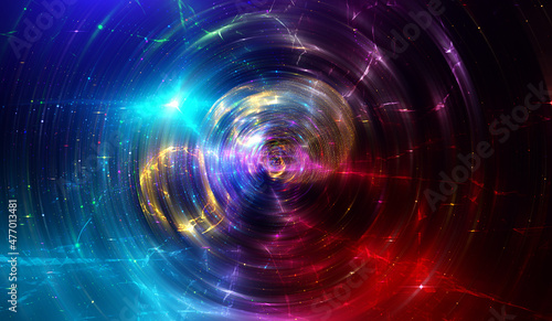 Wall mural abstract multicolored geometric illustration with circles. blurred background of the movement of lin