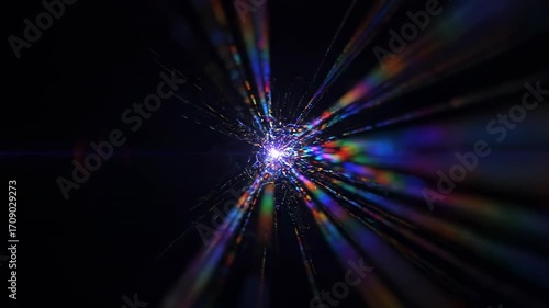 Wall mural : Abstract multicolored light streaks forming a hypnotic optical flare effect in a seamless loop backg