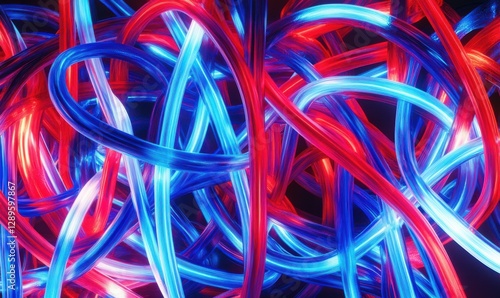 Wall mural abstract neon art display with glowing red and blue lines, creating a futuristic visual experience. - Wall murals Wall mural abstract neon art display with glowing red and blue lines, creating a futuristic visual experience. - Wall murals