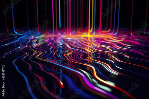 Wall mural : Abstract neon background in neon color pattern with lines and drops - vibrant neon liquid background -