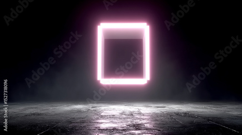 The watermark will not be included on Wall mural.: Abstract neon cube: illuminated geometric shape in a dark, atmospheric environment