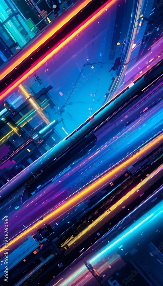 Wall mural : Abstract neon glowing lines background with dynamic futuristic elements