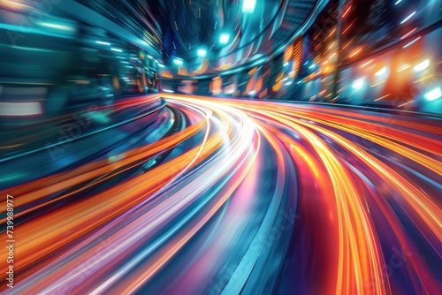 Wall mural abstract neon light lines creating sense of futuristic speed dynamic and modern background illustrat