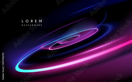 The watermark will not be included on Wall mural.: Abstract neon light spiral effect on black background