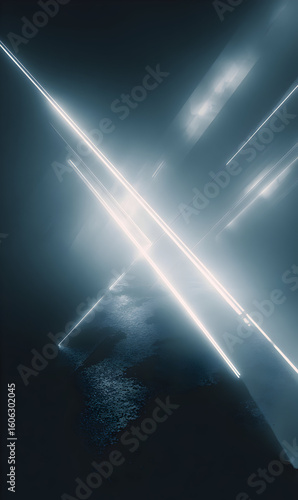 The watermark will not be included on Wall mural.: Abstract neon lines crossing in the dark creating a futuristic mood with glowing light and shadow ef
