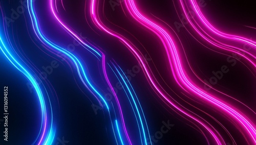 Wall mural : Abstract neon wave background glowing pink and blue wavy lines on dark space ideal for futuristic an