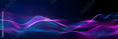 Wall mural : Abstract neon wave background in purple and blue tones - visualization of computer virtual reality - 3d