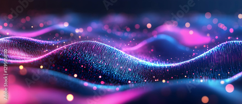 Wall mural : Abstract neon wave lines with glowing bokeh lights, high-speed data transfer concept -