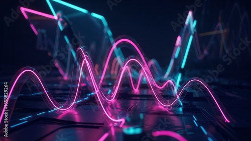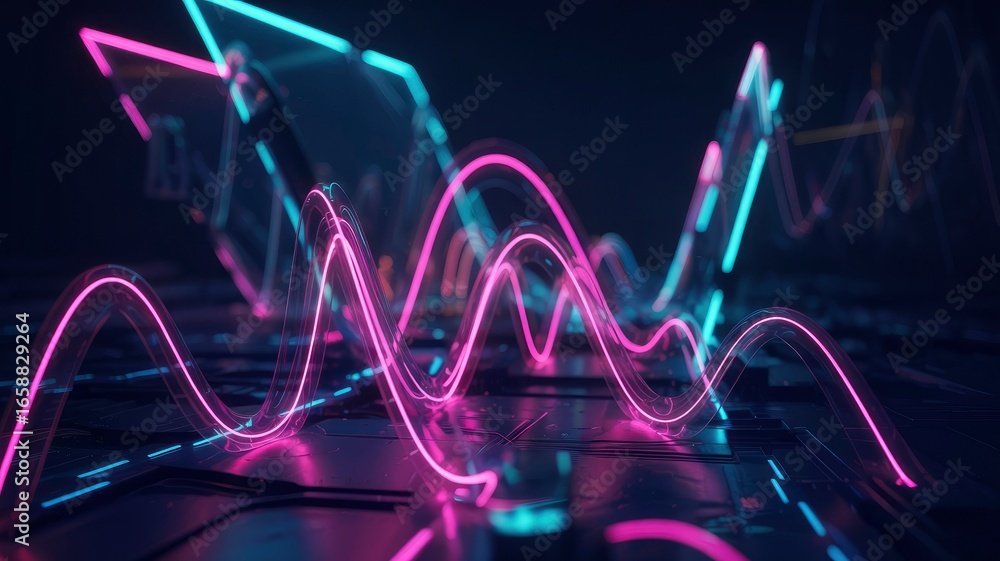 Wall mural abstract neon waves futuristic data visualization background - Wall murals Wall mural abstract neon waves futuristic data visualization background - Wall murals