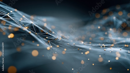 Wall mural : Abstract network connected nodes & lines in wave-like motion with soft background