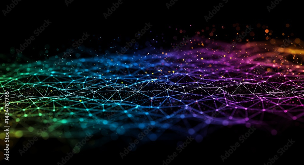 Wall mural abstract network connection with colorful lines and dots on black background - Wall murals Wall mural abstract network connection with colorful lines and dots on black background - Wall murals
