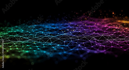Wall mural : Abstract network connection with colorful lines and dots on black background