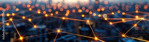 Wall mural abstract network connection with glowing lights and blurred cityscape background - Wall murals Wall mural abstract network connection with glowing lights and blurred cityscape background - Wall murals
