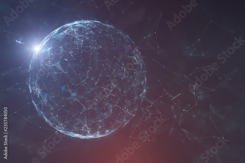Wall mural : Abstract network cyberspace globe with sunlight reflection copy space illustration background - view