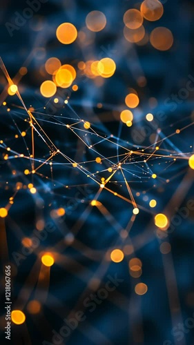 The watermark will not be included on Wall mural.: Abstract network design featuring glowing dots and lines in a dark background, representing technolo