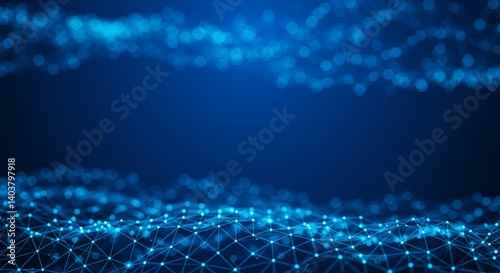 Wall mural abstract network grid with connected particles - network, data flow, connection, technology, communi