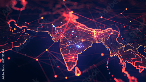 Wall mural : Abstract network grid with data transfer lines and nodes on indian map