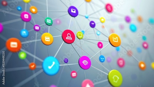 Wall mural abstract network of colorful app icons interconnected by lines - Wall murals Wall mural abstract network of colorful app icons interconnected by lines - Wall murals