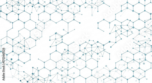 Wall mural abstract network of connected hexagons and nodes in a technical