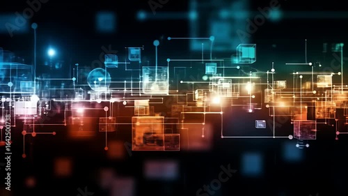 Wall mural : Abstract network of glowing digital cubes and lines on a dark background