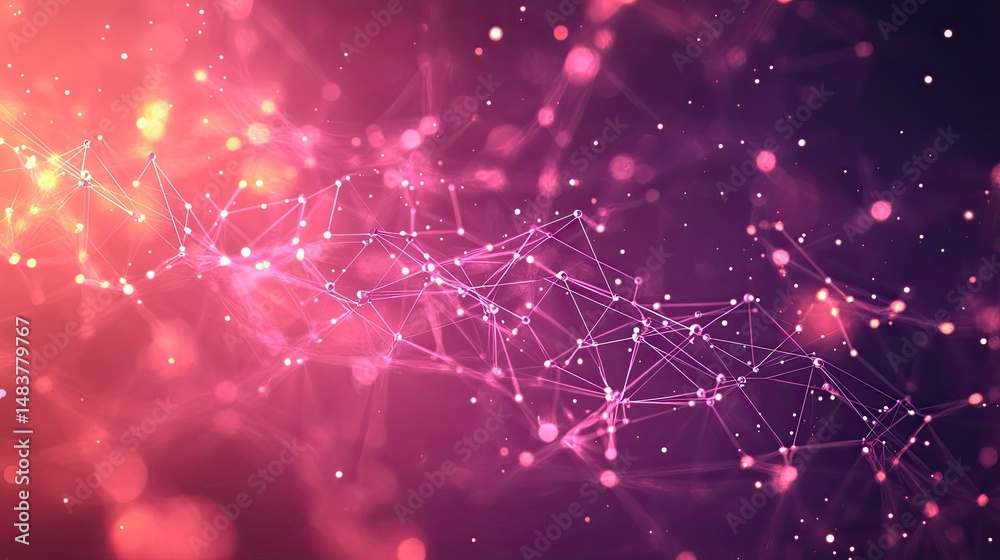 Wall mural : Abstract network of interconnected lines and nodes on a vibrant pink and red gradient background