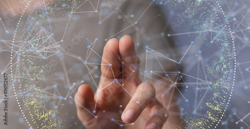 Wall mural : Abstract network of physical devices on the internet using a network connection with statistics numb