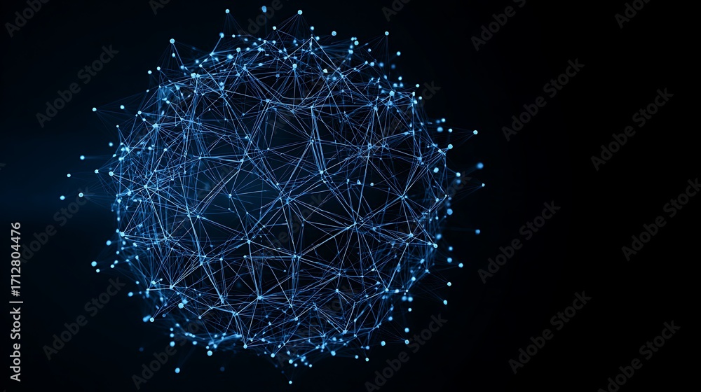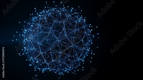 Wall mural abstract network sphere with glowing nodes and connections on dark background