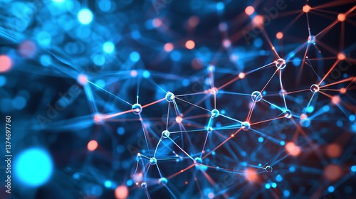 Wall mural abstract network with blue and red nodes connected by lines forming a complex interconnected system - Wall murals Wall mural abstract network with blue and red nodes connected by lines forming a complex interconnected system - Wall murals