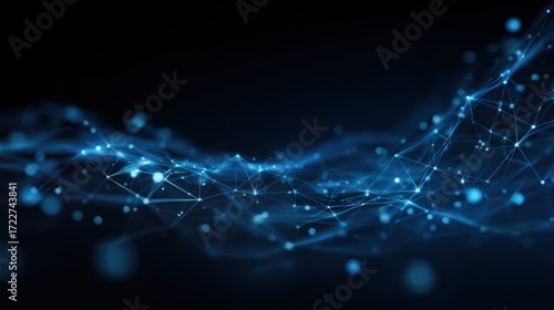 Wall mural abstract network with interconnected nodes forming a wave against dark background