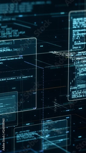 Wall mural abstract network with random programming code, web and software development concept, futuristic tech - Wall murals Wall mural abstract network with random programming code, web and software development concept, futuristic tech - Wall murals
