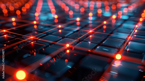 The watermark will not be included on Wall mural.: Abstract network with red glowing points