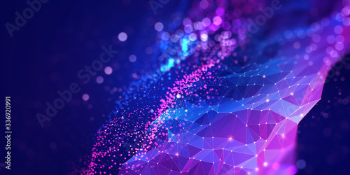 The watermark will not be included on Wall mural.: Abstract neural network 3d illustration - big data concept - global database and artificial intelligen