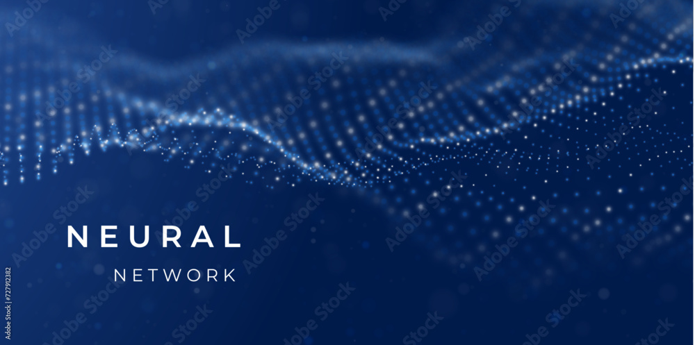 Wall mural abstract neural network blue background. flow wave with dot landscape. digital data structure. techn - Wall murals Wall mural abstract neural network blue background. flow wave with dot landscape. digital data structure. techn - Wall murals
