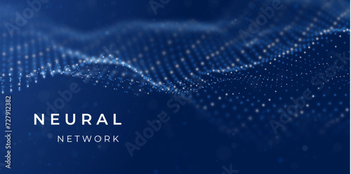 Wall mural abstract neural network blue background. flow wave with dot landscape. digital data structure. techn