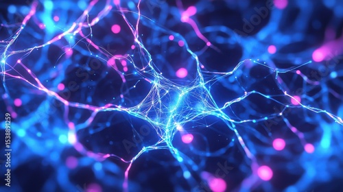 The watermark will not be included on Wall mural.: Abstract neural network connection with vibrant colors and lights