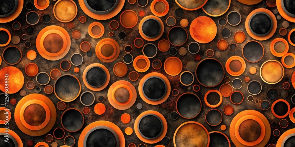 The watermark will not be included on Wall mural.: Abstract orange and black concentric circles pattern design with textured background
