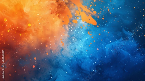 Wall mural abstract orange and blue splash background with copy space – dynamic and vibrant colorful texture, i